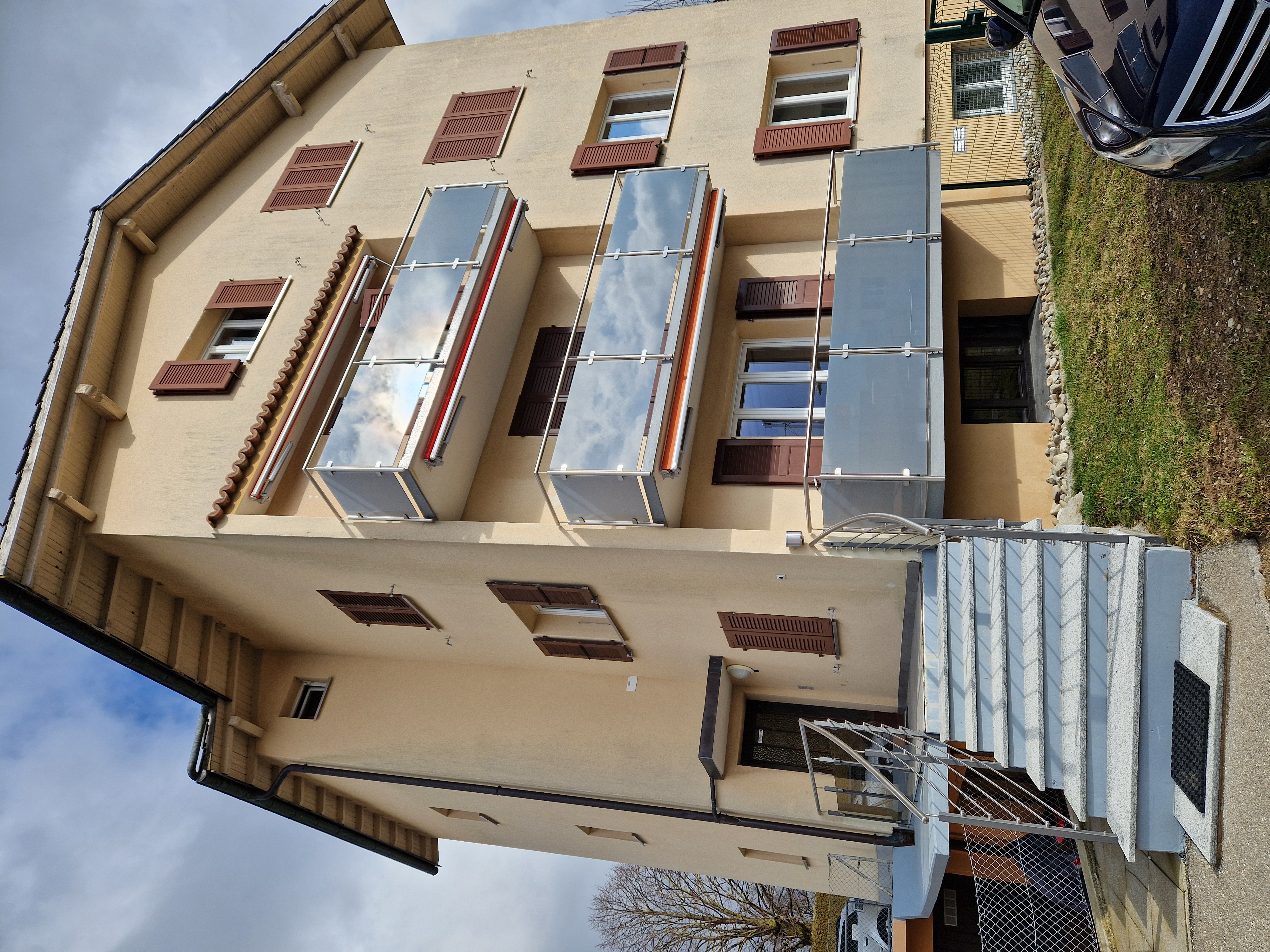 An einer sehr ruhigen und sonnigen Lage. Umgeben von Reihen- und Einfamilienhäusern in einem kinderfreundlichen Quartier. Die Liegenschaft ist ca. 100m von der Bushaltestelle entfernt.