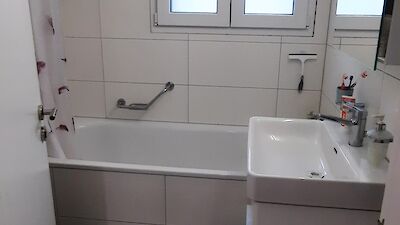 -praktisches Badezimmer mit Badewanne