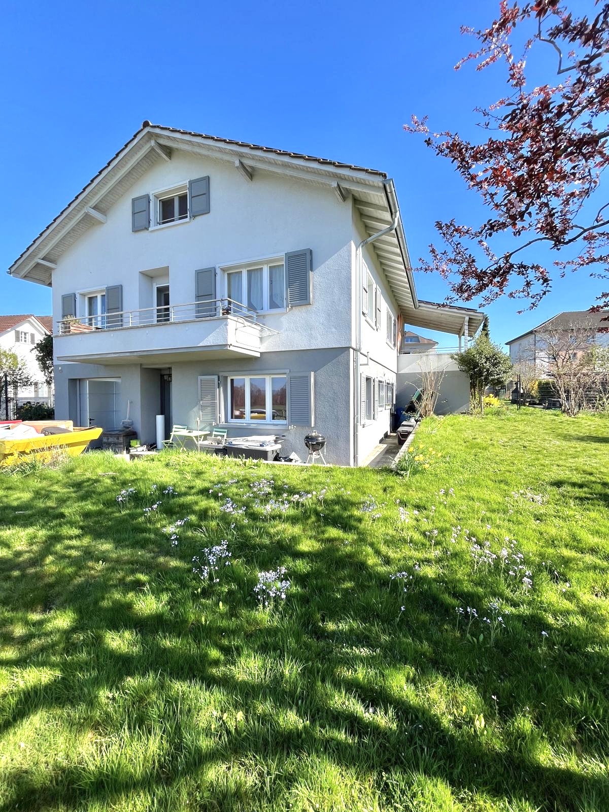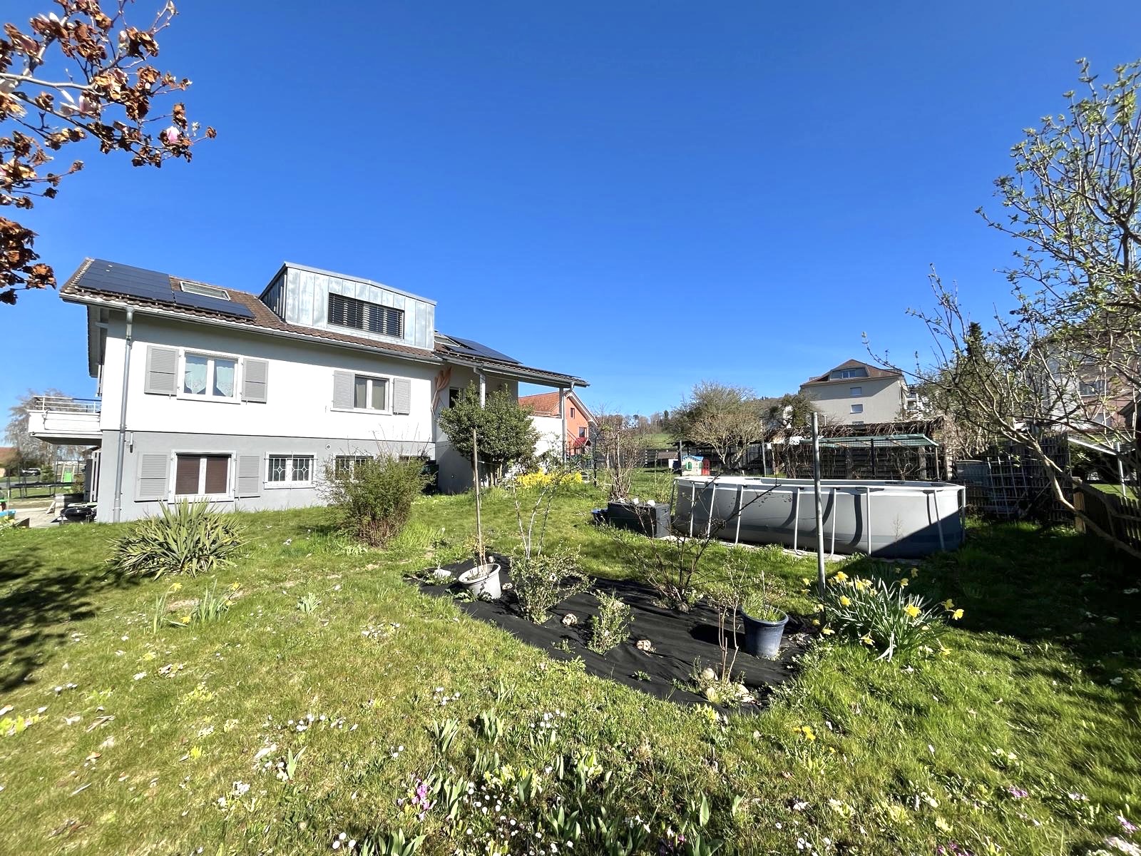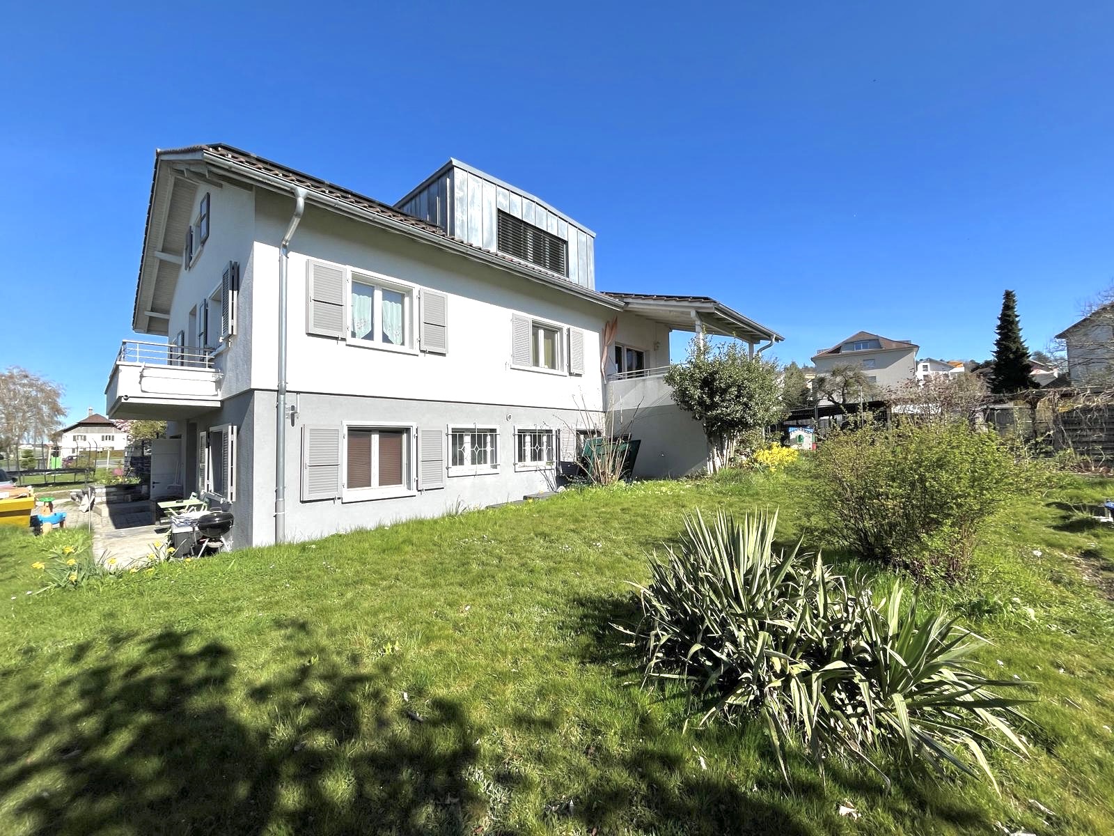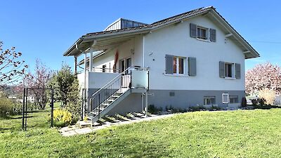 Es handelt sich um ein grosszügiges 6.5-Zimmer-Einfamilienhaus. Im Aussenbereich stehen ein Gemüsegarten zur Nutzung, ein Unterstand, ein gepflegter Garten sowie eine weitläufige Rasenfläche zur Verfügung. Der Gartenunterhalt geht zu Lasten des Mieters. Ebenfalls sind ausreichend Parkmöglichkeiten vorhanden.