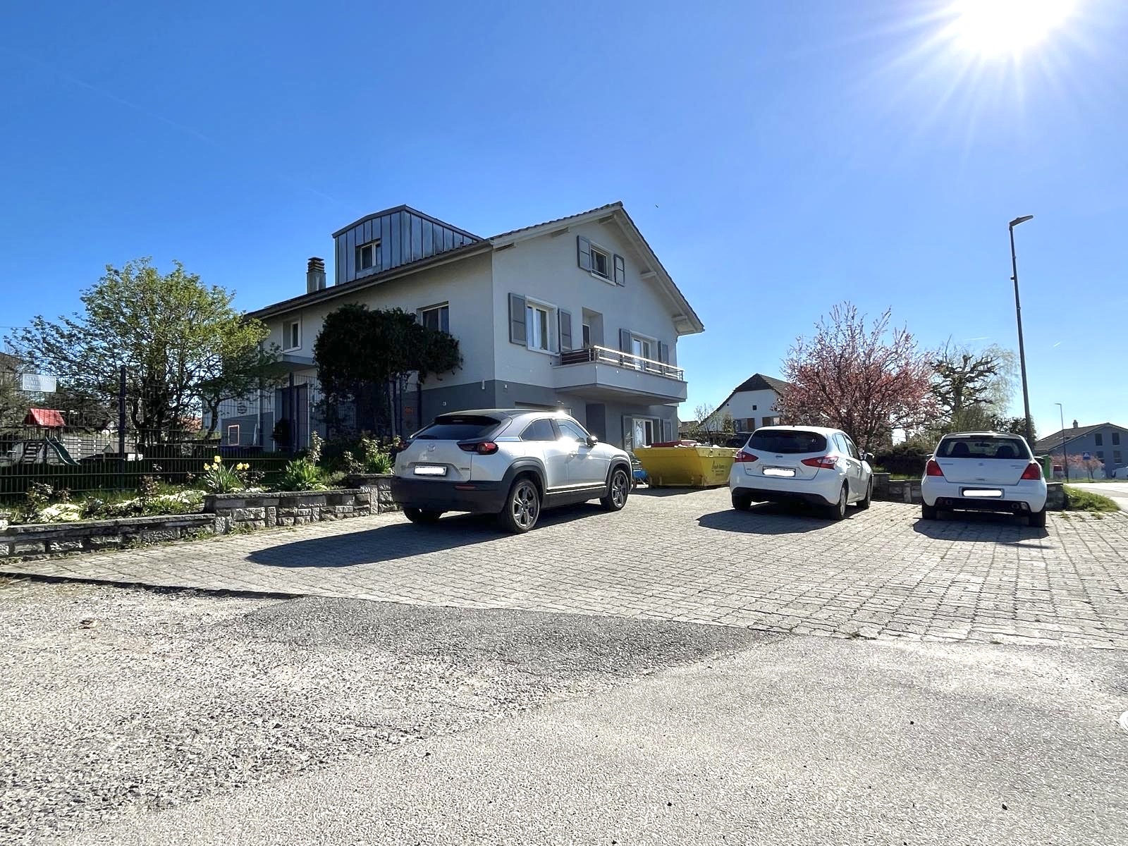 Die Liegenschaft verfügt über zwei Aussenparkplätze sowie eine Garage, welche im Mietzins inbegriffen sind.